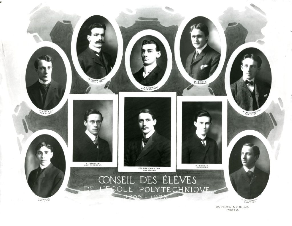 Le négatif représente les membres du conseil de l'École polytechnique de Montréal. Il contient la photo de Pierre Charton, E. Cormier, P. Béique, D. Chéne, A. Cousineau, J. Simard, G. Hurtubise, F. Fabien, H. Ortiz et A. Beauchemin