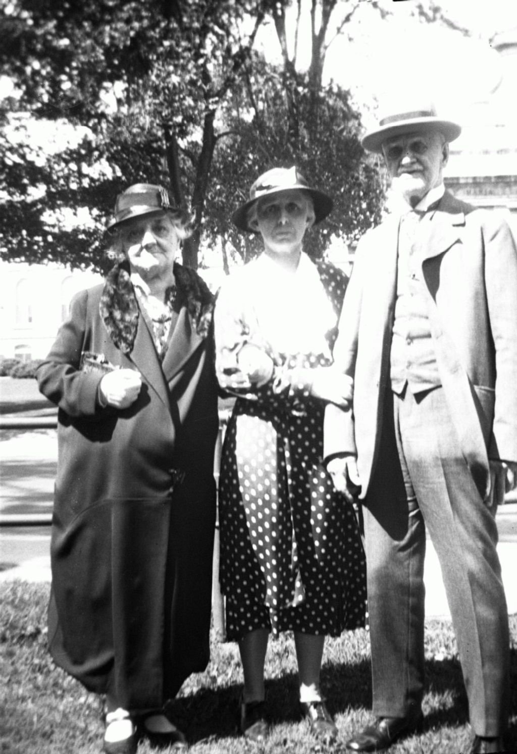 Joséphine, Berthilde et Antoine Hudon, 80, 54 et 86 ans, à l'extérieur