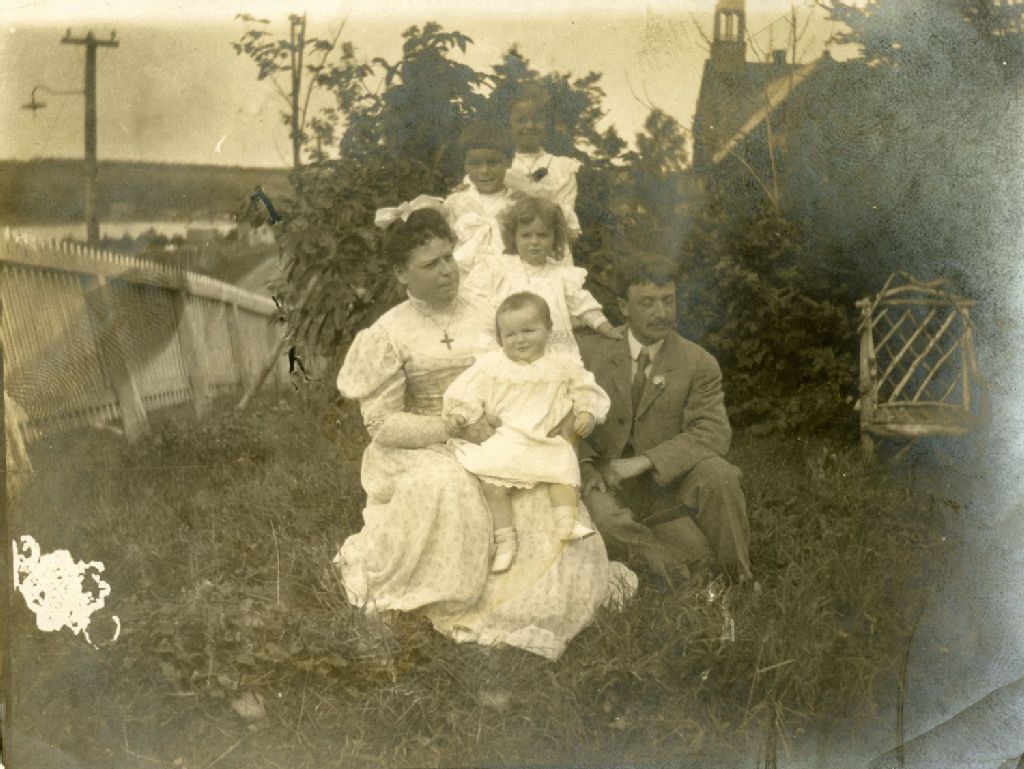 Famille non-identifiée composée des deux parents et de quatre enfants âgés entre 1 et 5 ans
