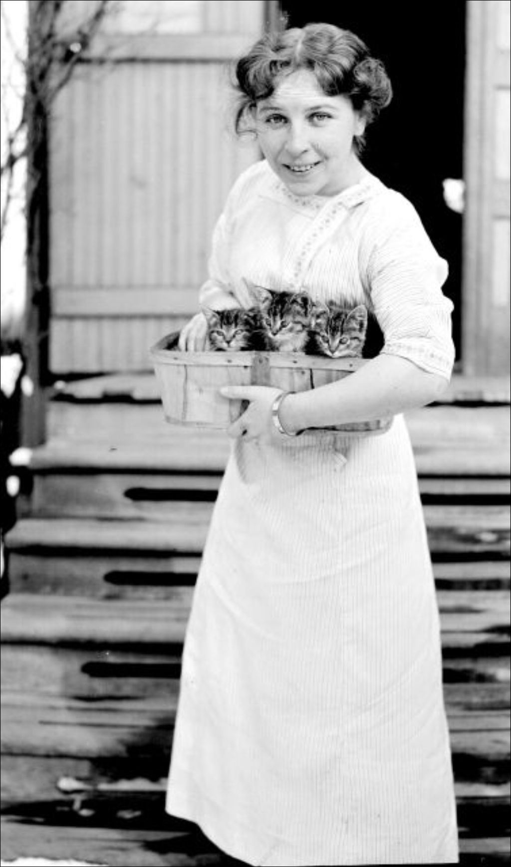 Une femme tenant des chatons, Décembre 1913, Archives nationales à Montréal, Fonds William Murray, (06M,P401,S1,P326), Murray, William, né [vers 1865].