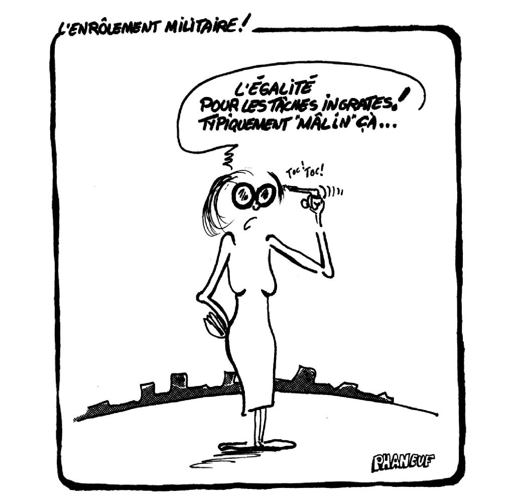 Une femme dit : "L'égalité pour les tâches ingrates! Typiquement "Mâlin" çà..."