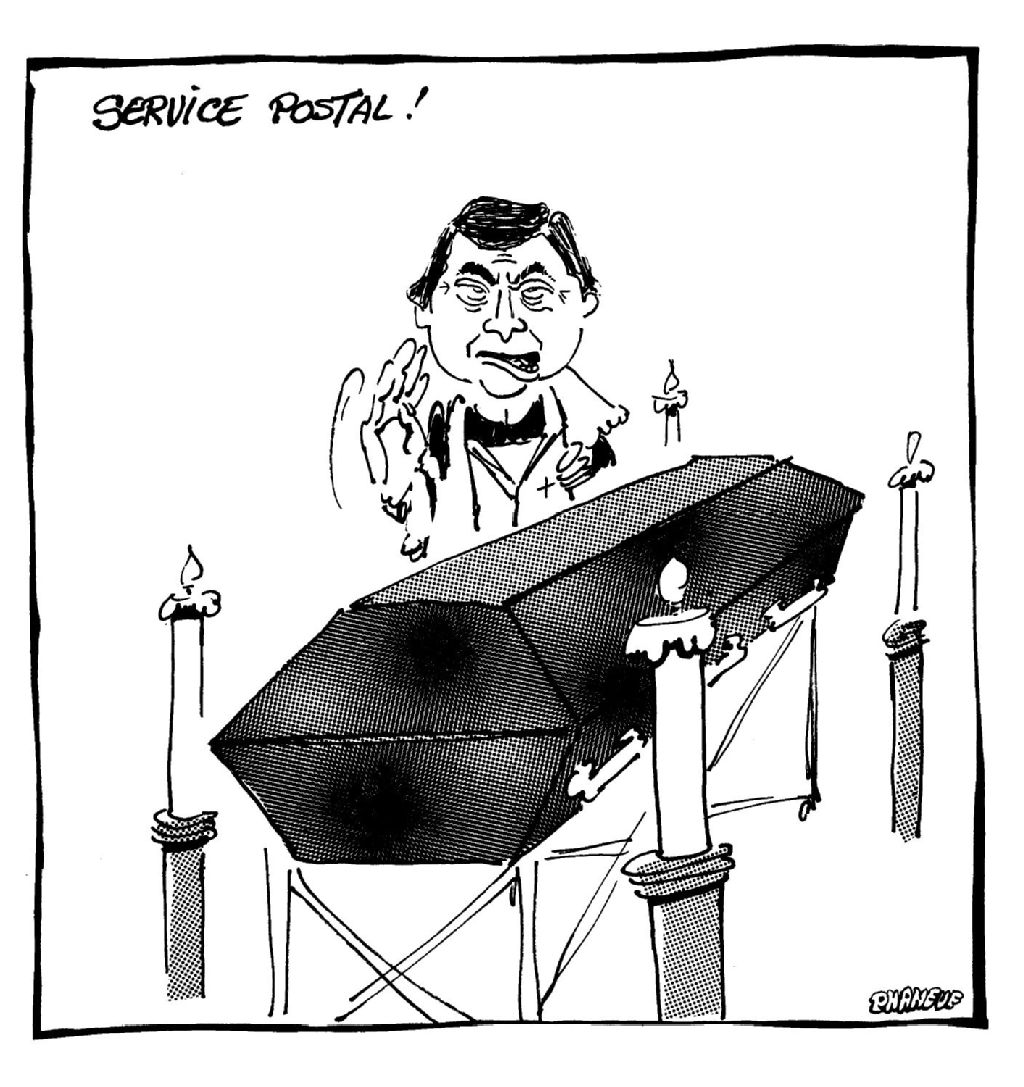 Jean-Claude Parrot est devant un cercueil