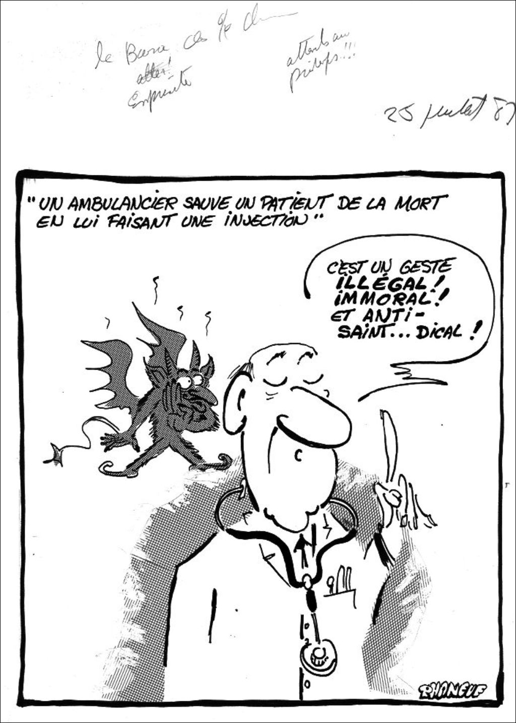 Un ambulancier sauve un patient de la mort en lui faisant une injection, 25 juillet 1987, Archives nationales à Montréal, Fonds Jean-Marc Phaneuf, (06M,P575,S4,SS4,P361), Jean-Marc Phaneuf.
