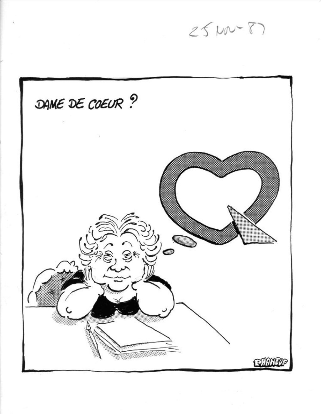 Dame de coeur, 25 novembre 1987, Archives nationales à Montréal, Fonds Jean-Marc Phaneuf, (06M,P575,S4,SS4,P412), Jean-Marc Phaneuf.