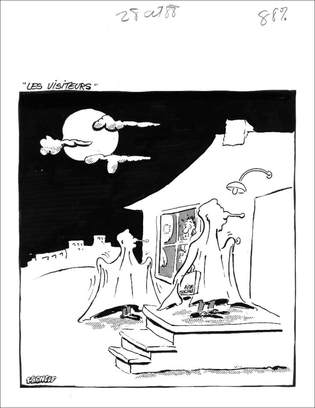 Deux fonctionnaires de l'aide sociale sont déguisés en fantômes et se présentent chez des assistés sociaux pour une vérification