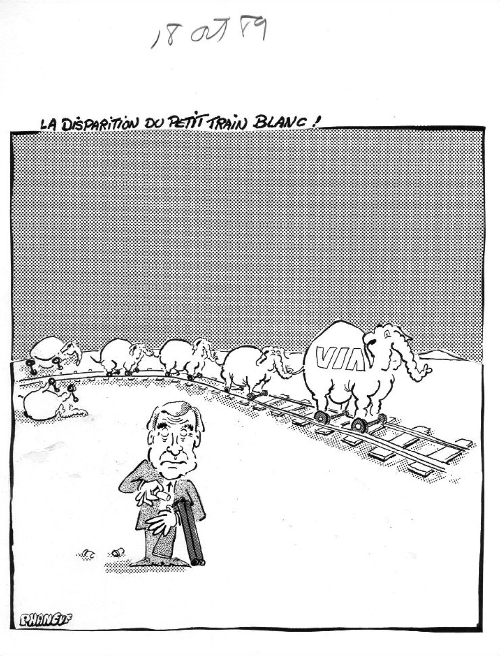 La disparition du petit train blanc, 18 octobre 1989, Archives nationales à Montréal, Fonds Jean-Marc Phaneuf, (06M,P575,S4,SS4,P726), Phaneuf.