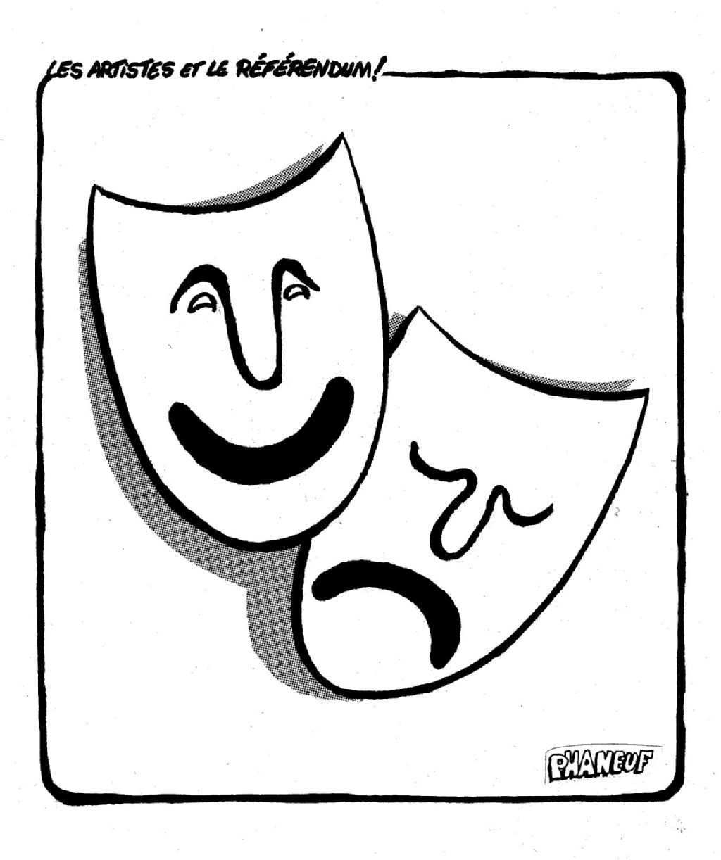 Les artistes et le référendum, [Vers 1980], Archives nationales à Montréal, Fonds Jean-Marc Phaneuf, (06M,P575,S4,SS4,P75), Jean-Marc Phaneuf.