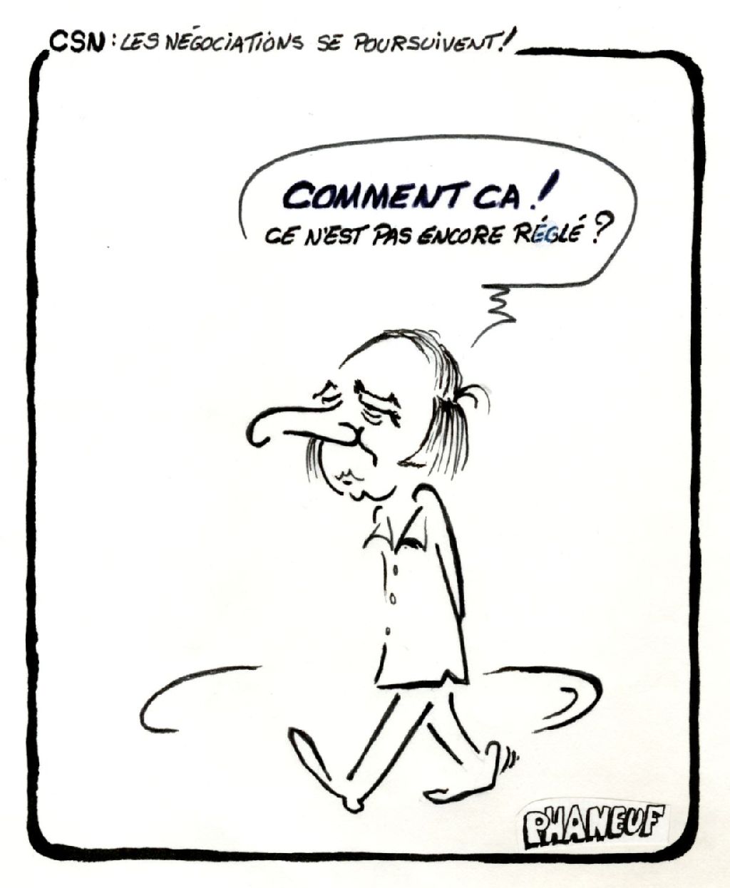 CSN : Les négociations se poursuivent, [1980?], Archives nationales à Montréal, Fonds Jean-Marc Phaneuf, (06M,P575,S4,SS4,P792), Phaneuf.