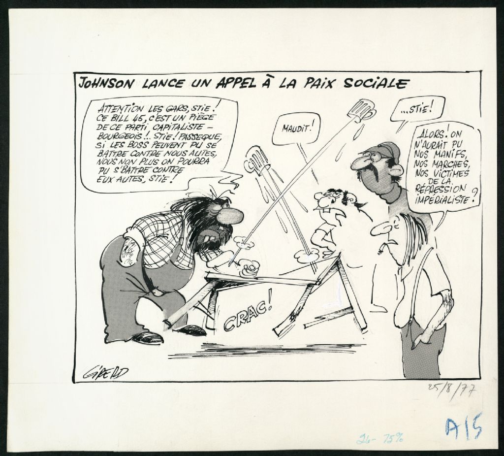Johnson lance un appel à la paix sociale, 25 août 1977, Archives nationales à Montréal, Fonds Jean-Pierre Girerd, (06M,P683,S2,SS2,P383), Girerd.