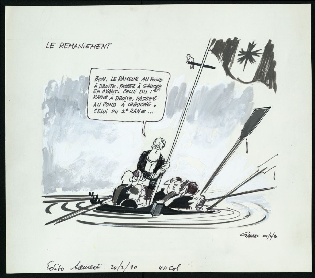 Le remaniement, 24 février 1990, Archives nationales à Montréal, Fonds Jean-Pierre Girerd, (06M,P683,S2,SS2,P688), Girerd.