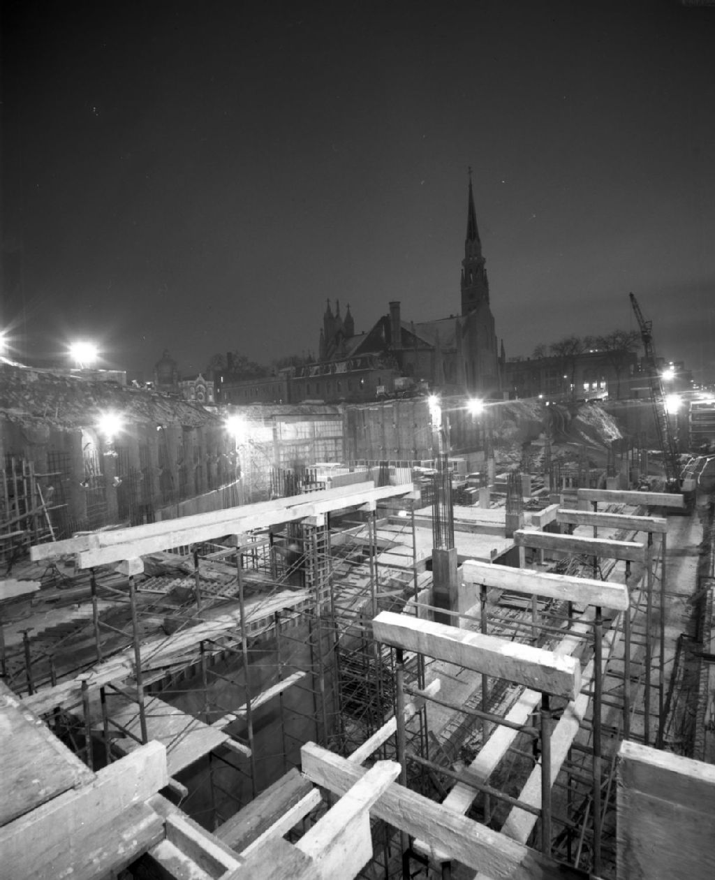 - Travaux d'excavation pour la construction de la station de métro Berri-de-Montigny, devenue Berri-UQÀM à Montréal