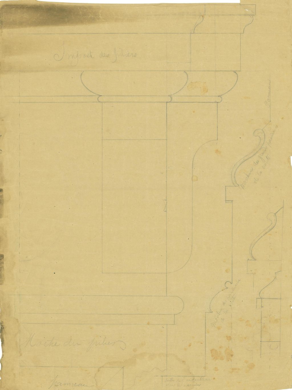 Imposte des piliers de l'église de La-Nativité-de-La-Prairie, [Vers 1860], Archives nationales à Montréal, Fonds Paroisse de La-Nativité-de-la-Sainte-Vierge, église de La-Nativité-de-La-Prairie, (06M,P761,P5), Photographe non identifié.