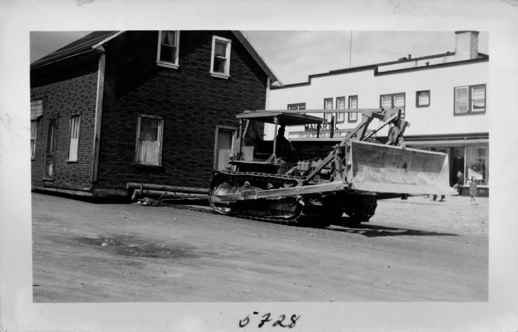 East Amphi Gold Mines - Gros plan des maisons et d'une machinerie lourde.