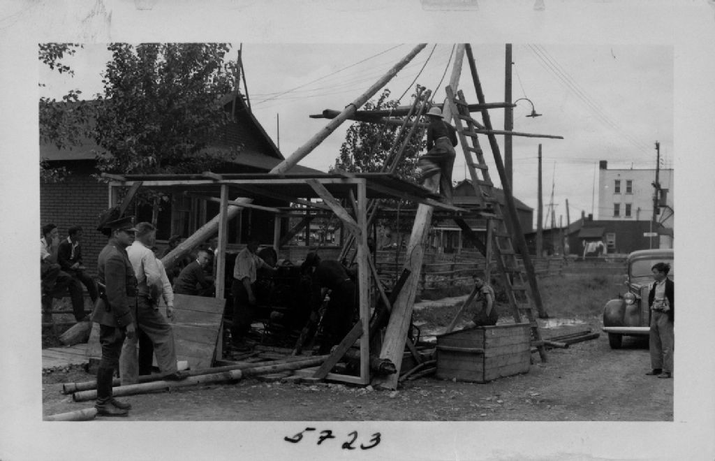 Foreuse à diamant sur la rue Bagshaw à Rouyn (Bagamac drilling).