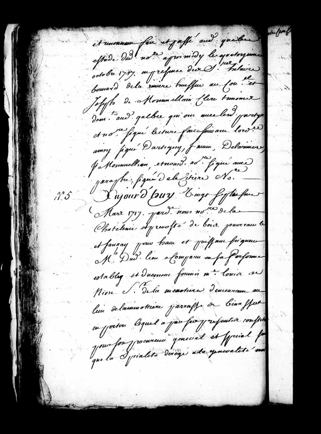 Procuration générale et spéciale du sieur Louis de Niort, sieur de la Minottière (LaMinotière), envers Maître Louis Rouer, écuyer, sieur d'Artigny, conseiller du Roi au Conseil supérieur de la Nouvelle-France, lui donnant pouvoir de vendre en son nom la seigneurie de La Nauraye (Noraye, LaNoraye, Lanoraie) (Notaire Biard, France), 27 mars 1717, Archives nationales à Québec, Fonds Intendants, (03Q,E1,S4,SS1,D119,P7).