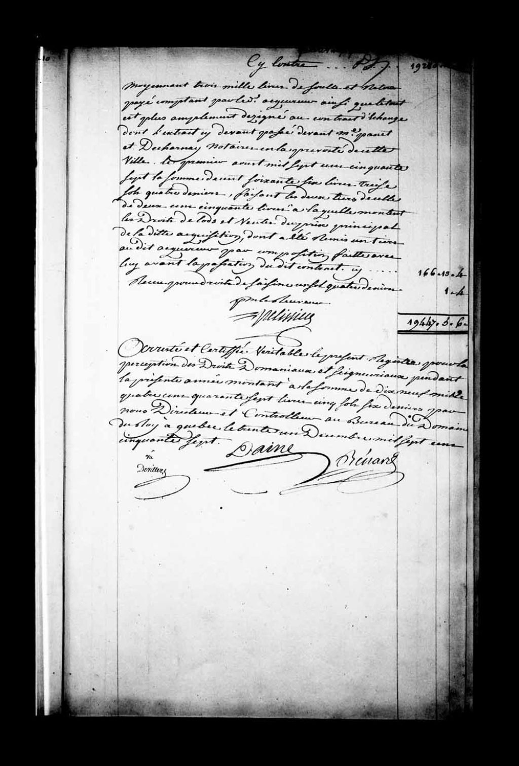 Conclusion comptable pour l'année 1757 quant aux diverses redevances versées au Domaine du Roi dans ladite année et authentification par le directeur et le contrôleur au Bureau du Domaine