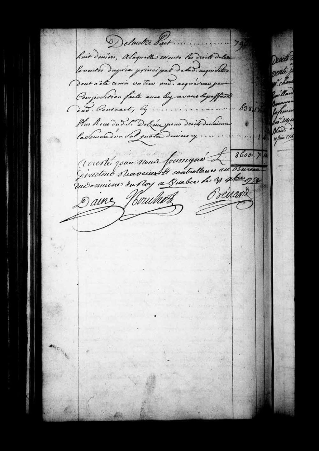 Conclusion comptable de l'année 1752 quant aux diverses redevances versées au Domaine du Roi en ladite année et authentification par le directeur, le receveur et le contrôleur au Bureau du Domaine
