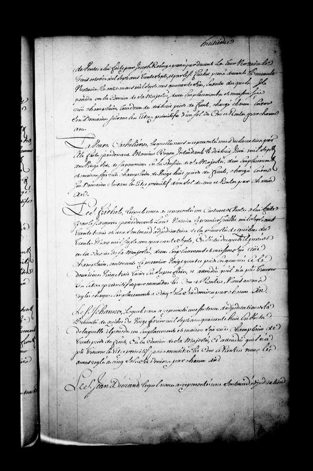 Déclaration du Sieur Frichet (Fréchet; Fréchette) quant à deux emplacements et maisons sis rue Champlain en la Basse-Ville de Québec