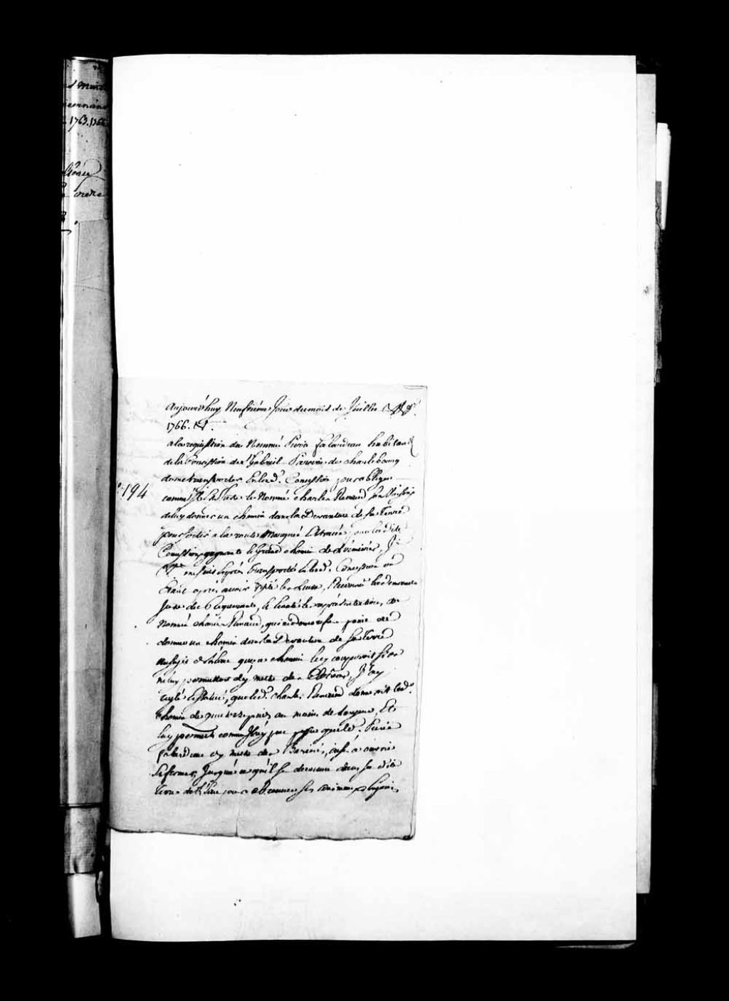 Procès-verbal de François-Joseph Cugnet qui ordonne de faire un chemin de sortie dans la concession Saint-Gabriel, paroisse de Charlesbourg, 9 juillet 1766, Archives nationales à Québec, Fonds Grands voyers, (03Q,E2,S1,D150,P638).