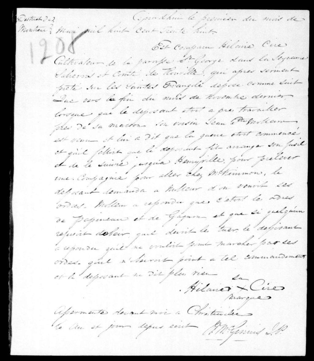 - Déposition de Hilaire Cire, de Saint-Georges, contre Jean-Baptiste Molleur