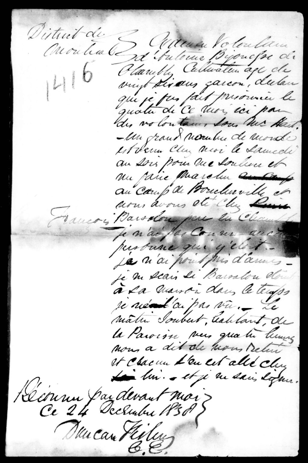 - Examen d'Antoine Bigonesse, cultivateur, de Chambly