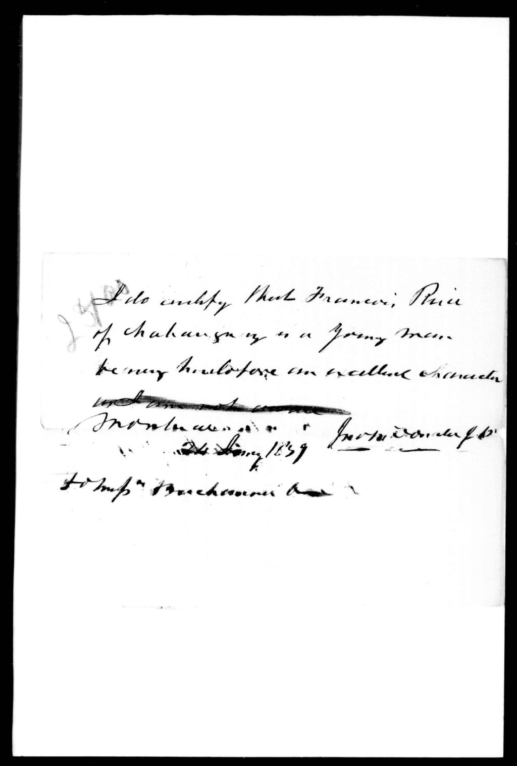 Certificat de John McDonald, en faveur de François Ruet