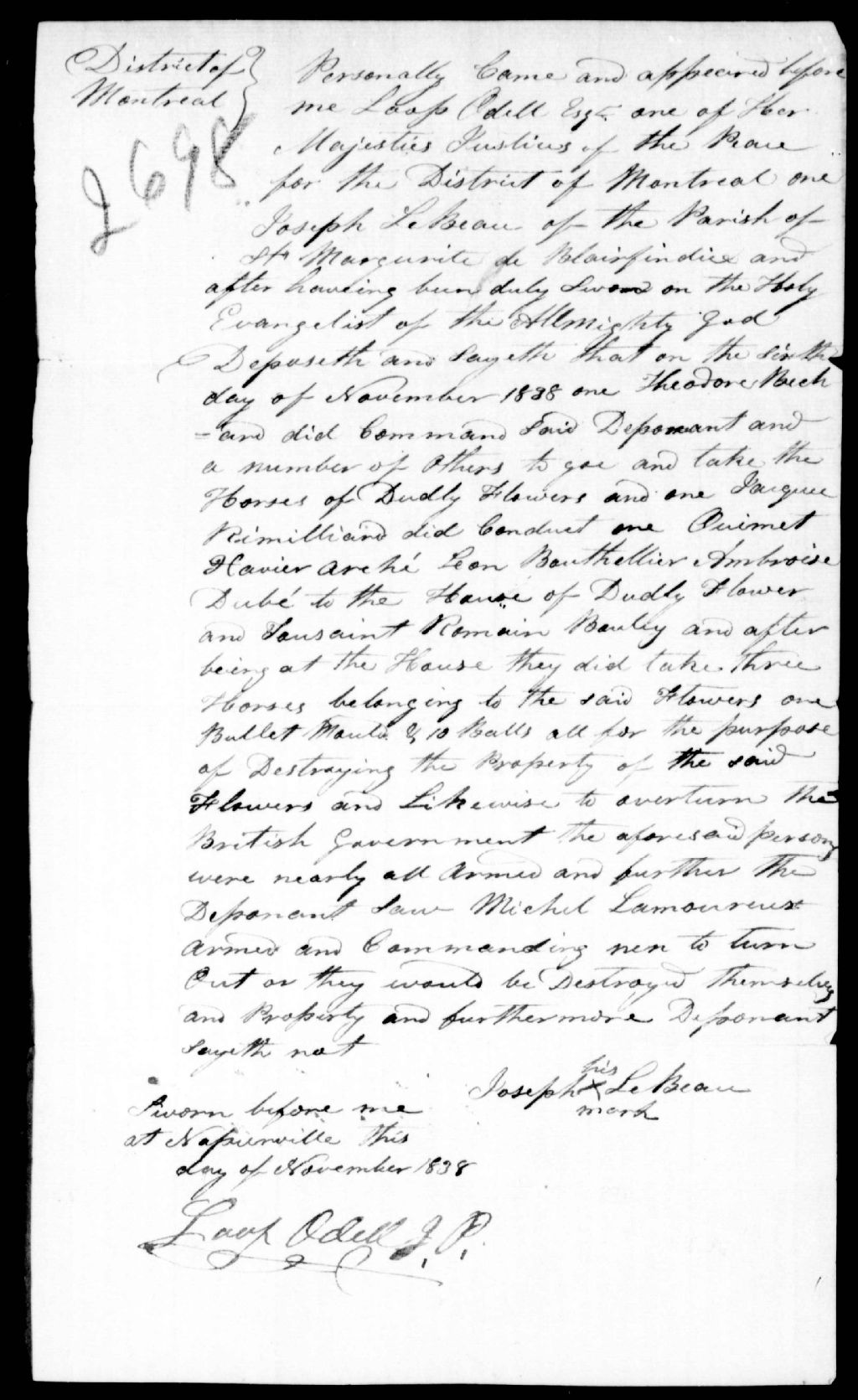 Déposition déposition de Joseph Lebeau contre quelques chefs rebelles