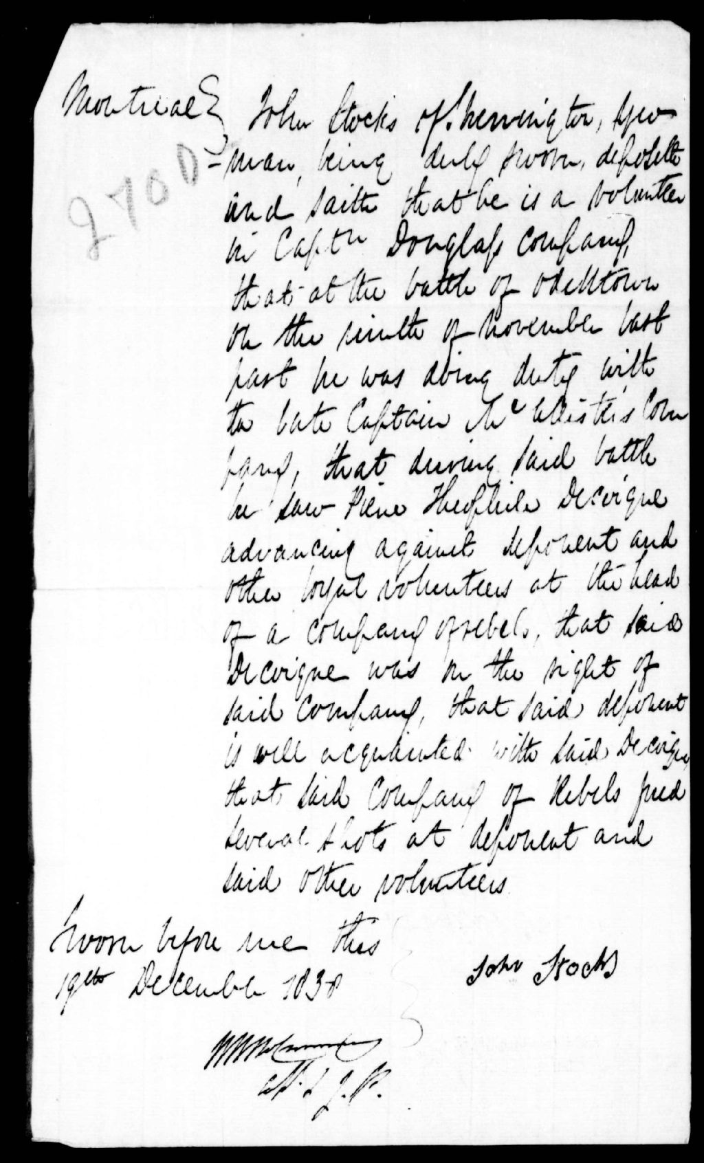 - Déposition de John Stocks contre Pierre-Théophile Decoigne