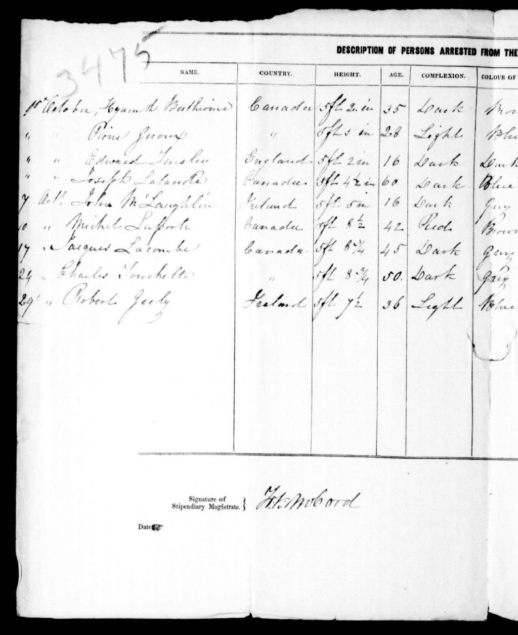- Liste des arrestations faites au poste de police de Sainte-Scholastique, mois d'octobre 1839