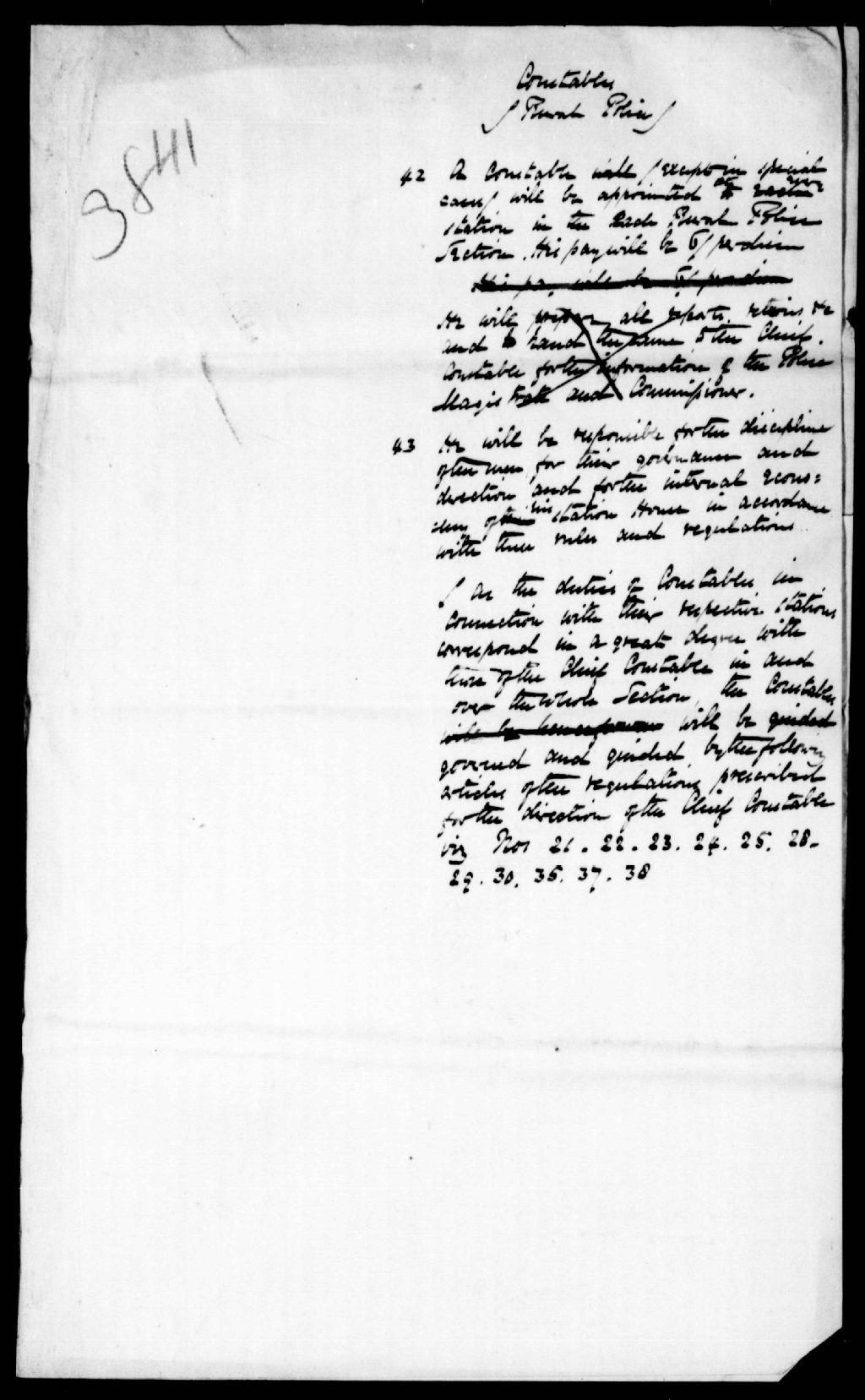 Brouillon des instructions aux constables de la police rurale, vers 1838, Archives nationales à Québec, Fonds Ministère de la Justice, (03Q,E17,S37,D3841).