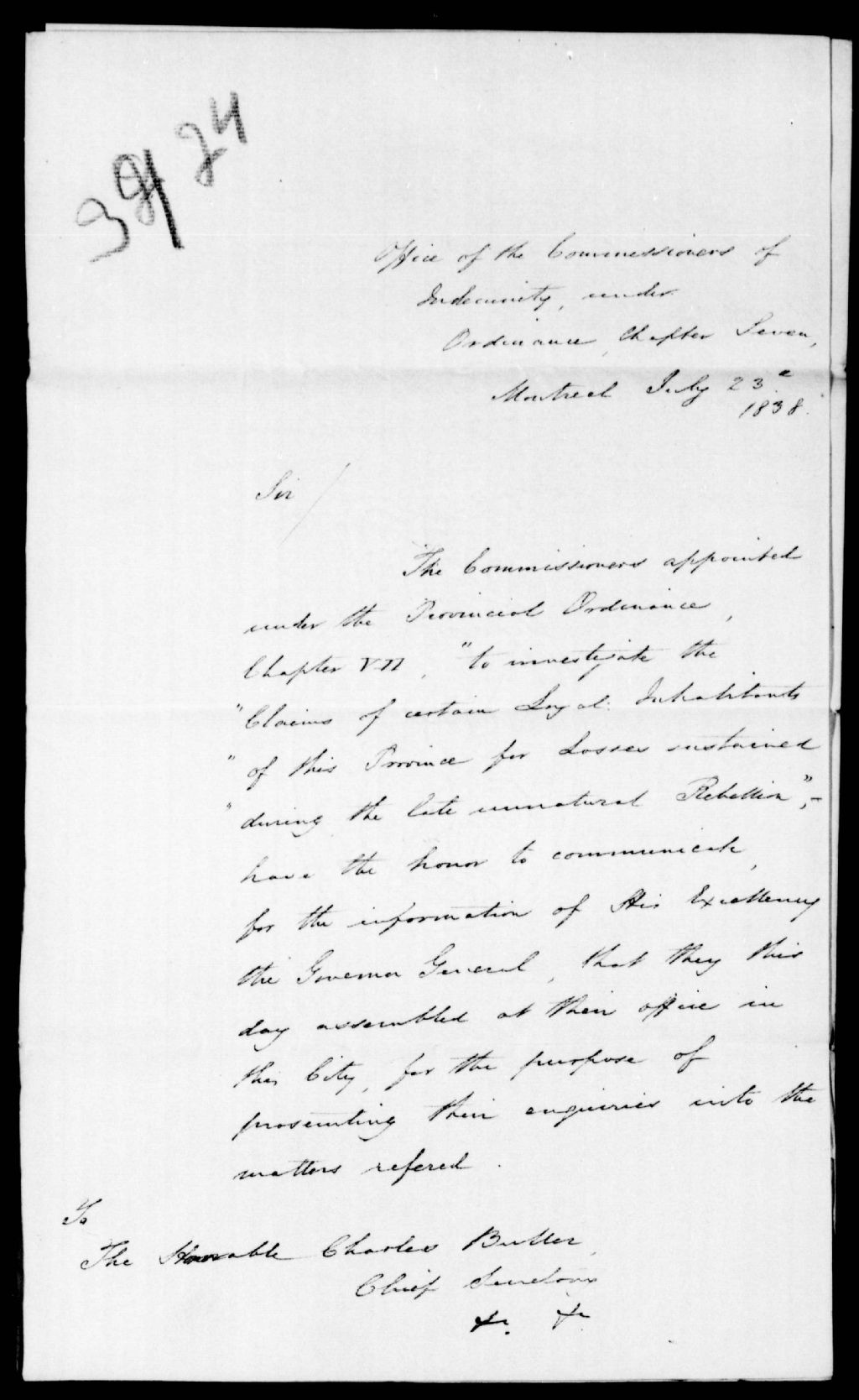 - Les commissaires demandent au gouverneur les instructions requises pour commercer leurs travaux d'enquête. Ce dossier fait partie d'un ensemble de documents intitulé : La Commission des indemnités pour les pertes subies pendant l'insurrection de 1837 et 1838