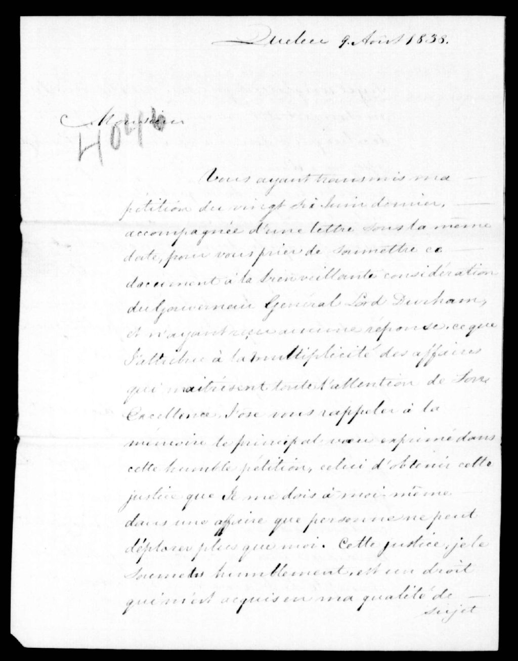 - Il demande une réponse à sa pétition. Ce dossier fait partie d'un ensemble de documents intitulé : Lettres privées adressées au gouverneur