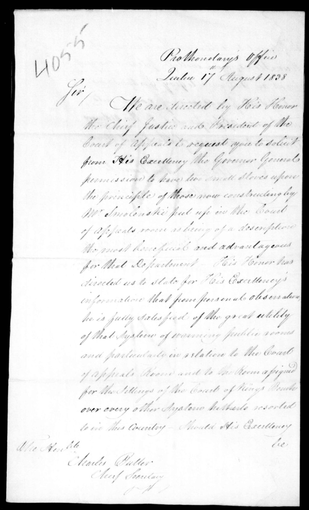 Lettre de Perrault et Burroughs, protonotaires, à l'honorable Charles Buller