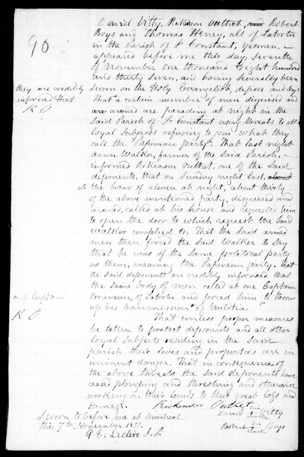 - Affidavit de David Vitty, Robert Boys et Thomas Heney, de la Tortue, Saint-Constant