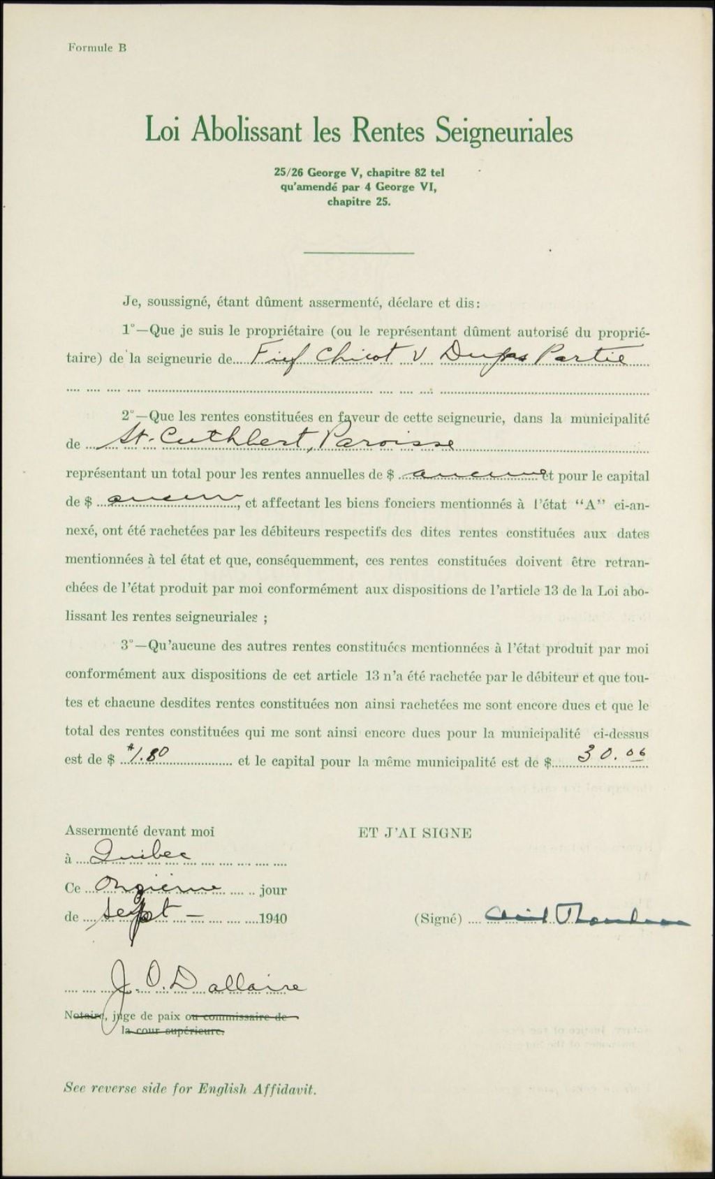 [Ovila] Rouleau, seigneuries de Chicot et Dupas
