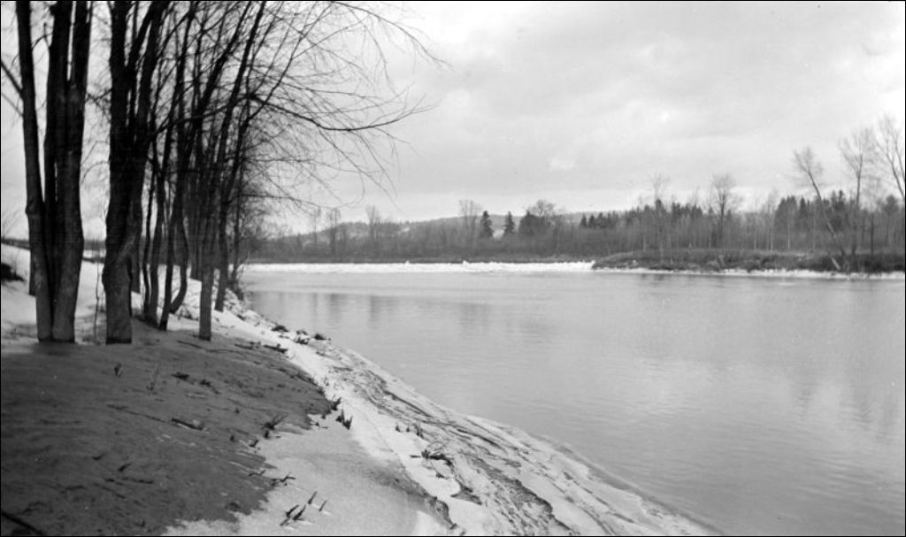 Glace sur la rivière Saint-François: vue du pont -route à Sherbrooke