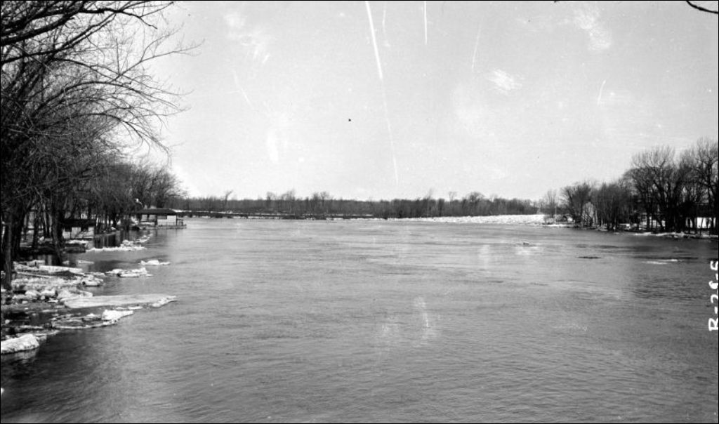 Rivière Châteauguay: vue du bassin, 1933, Archives nationales à Québec, Fonds Ministère de l'Environnement et de la Lutte contre les changements climatiques, (03Q,E57,S44,SS1,D127,PB29-5), Photographe non identifié.
