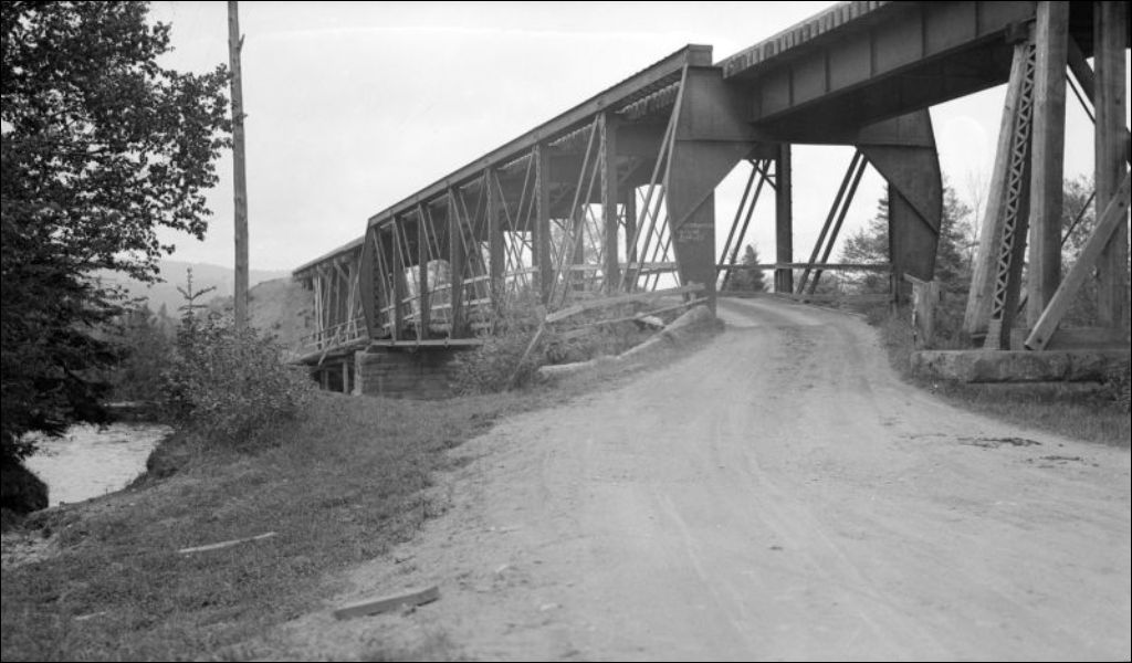 Cascapédia: vue du pont, 1934, Archives nationales à Québec, Fonds Ministère de l'Environnement et de la Lutte contre les changements climatiques, (03Q,E57,S44,SS1,D211,PB32-64), Photographe non identifié.