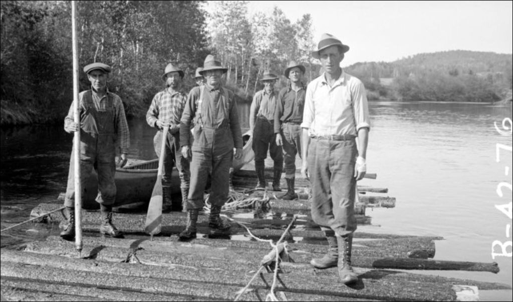 Rivière du Loup, comté de Maskinongé: hommes sur un radeau