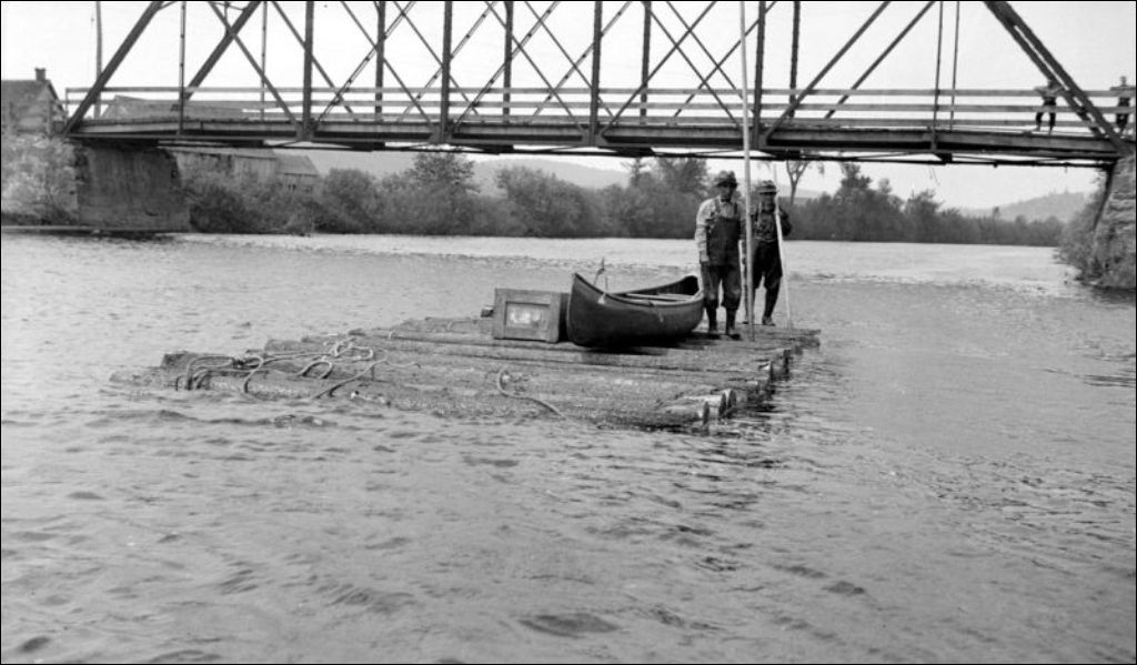 Rivière du Loup, comté de Maskinongé: flottage d'un radeau près du pont Bout-du-Monde