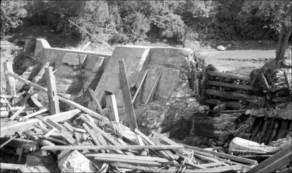 Rivière à la Truite: moulin Houle, 1942, Archives nationales à Québec, Fonds Ministère de l'Environnement et de la Lutte contre les changements climatiques, (03Q,E57,S44,SS1,D268,PB54-88), Photographe non identifié.