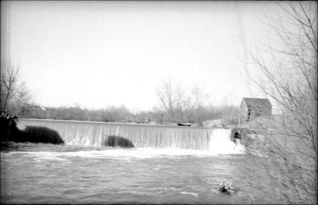 Rivière Noire: barrage de la Meunerie Coop à Saint-Casimir, 1948, Archives nationales à Québec, Fonds Ministère de l'Environnement et de la Lutte contre les changements climatiques, (03Q,E57,S44,SS1,D172,PB66-3), Photographe non identifié.