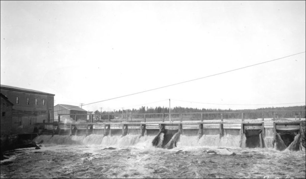 Rivière au Saumon: barrage de Scottstown, 1924, Archives nationales à Québec, Fonds Ministère de l'Environnement et de la Lutte contre les changements climatiques, (03Q,E57,S44,SS1,D133,PB7-62), Photographe non identifié.