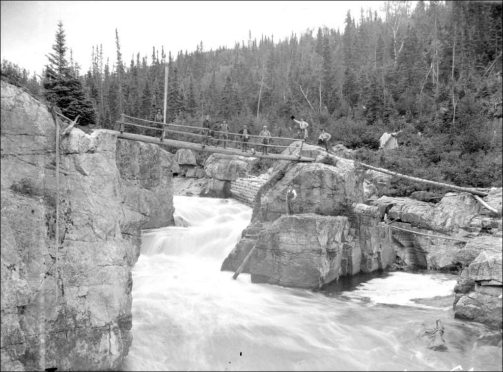 Rivière des Escoumains: une des chutes à Pinel, 1920, Archives nationales à Québec, Fonds Ministère de l'Environnement et de la Lutte contre les changements climatiques, (03Q,E57,S44,SS1,D312,PC1-84), Photographe non identifié.