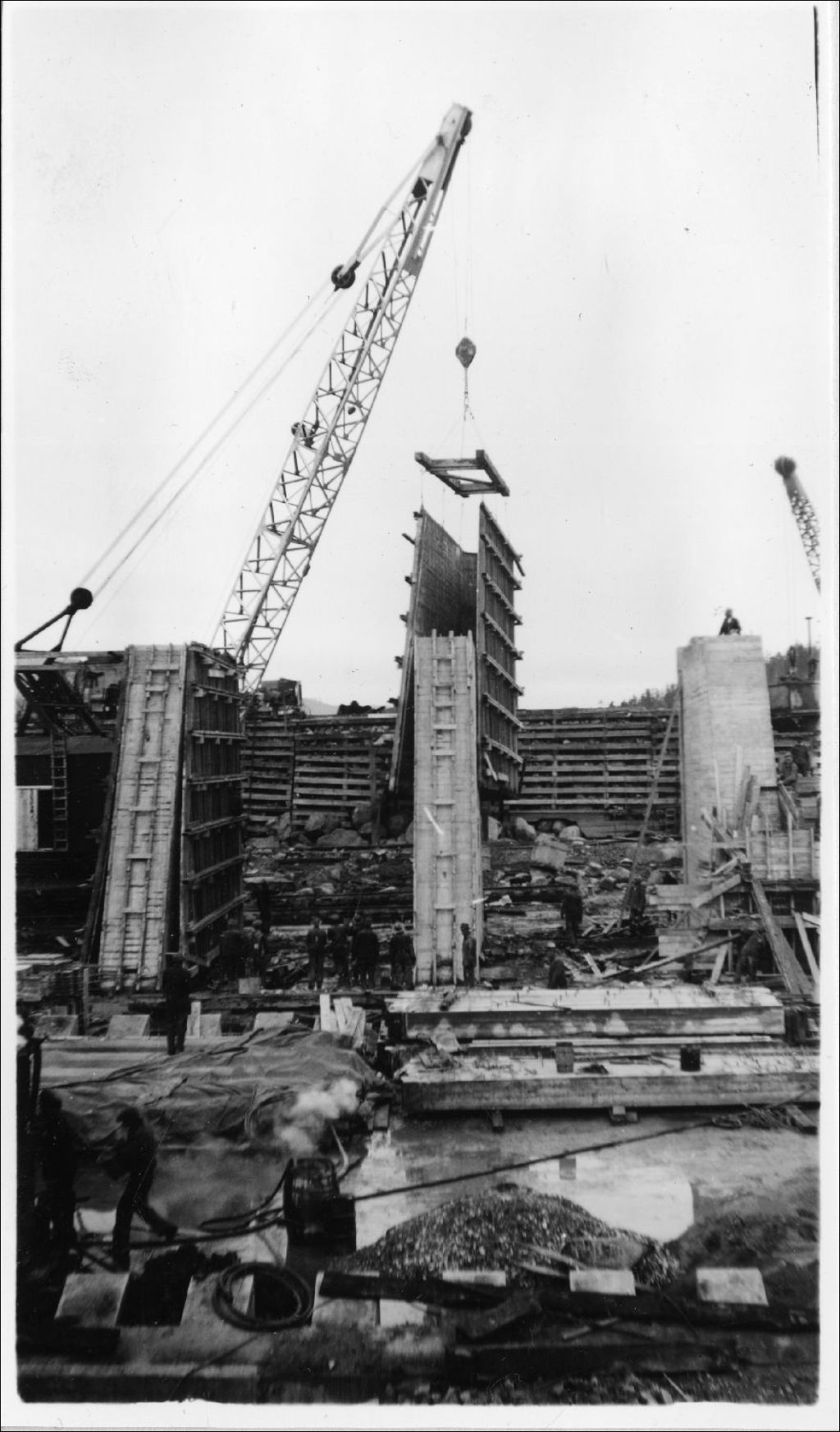 Temiskaming dam reconstruction - Removing nose and side forms of pier intact, to be used at next pier site