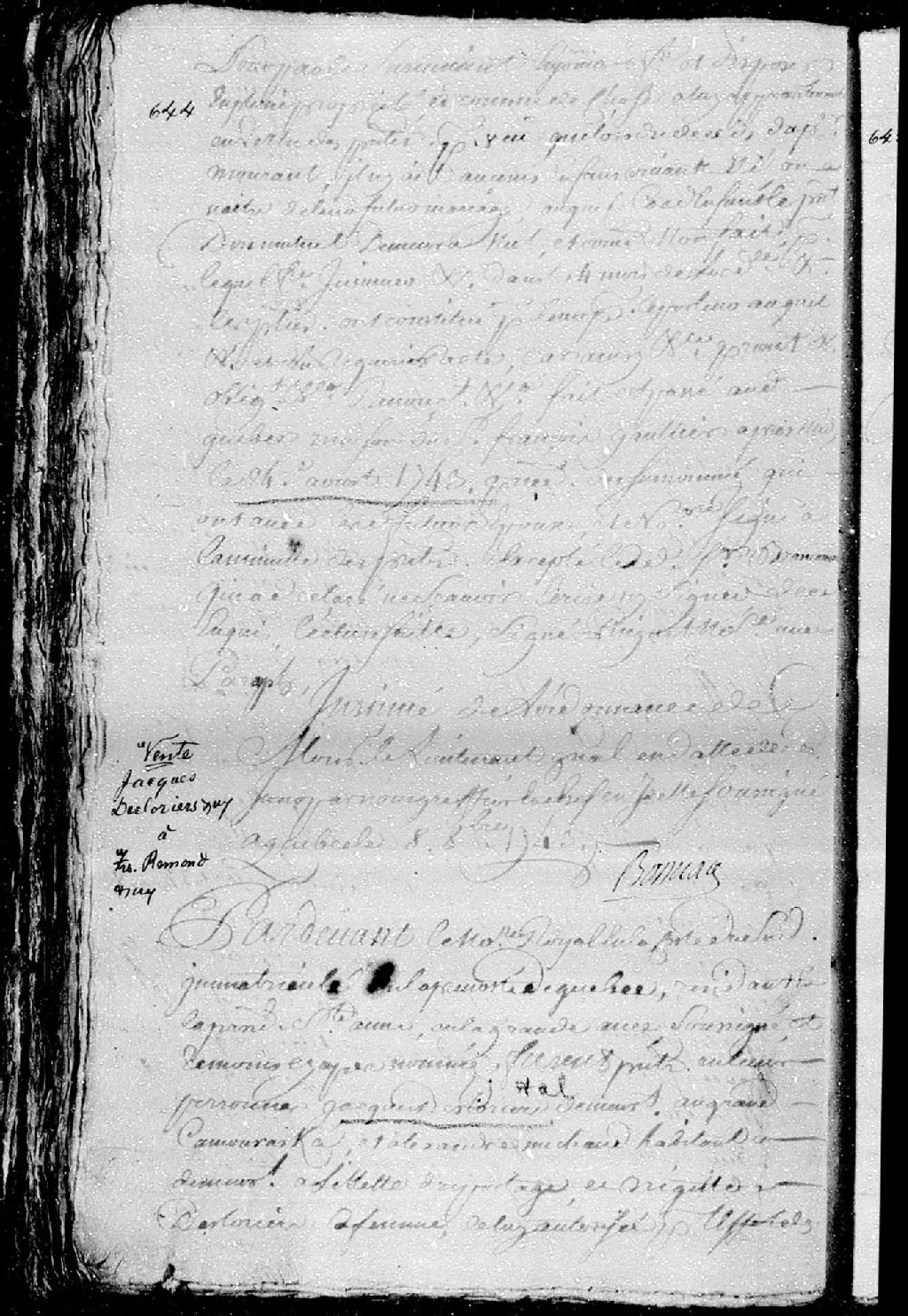 - 2 juillet 1743 (Document insinué le 8 octobre 1743)