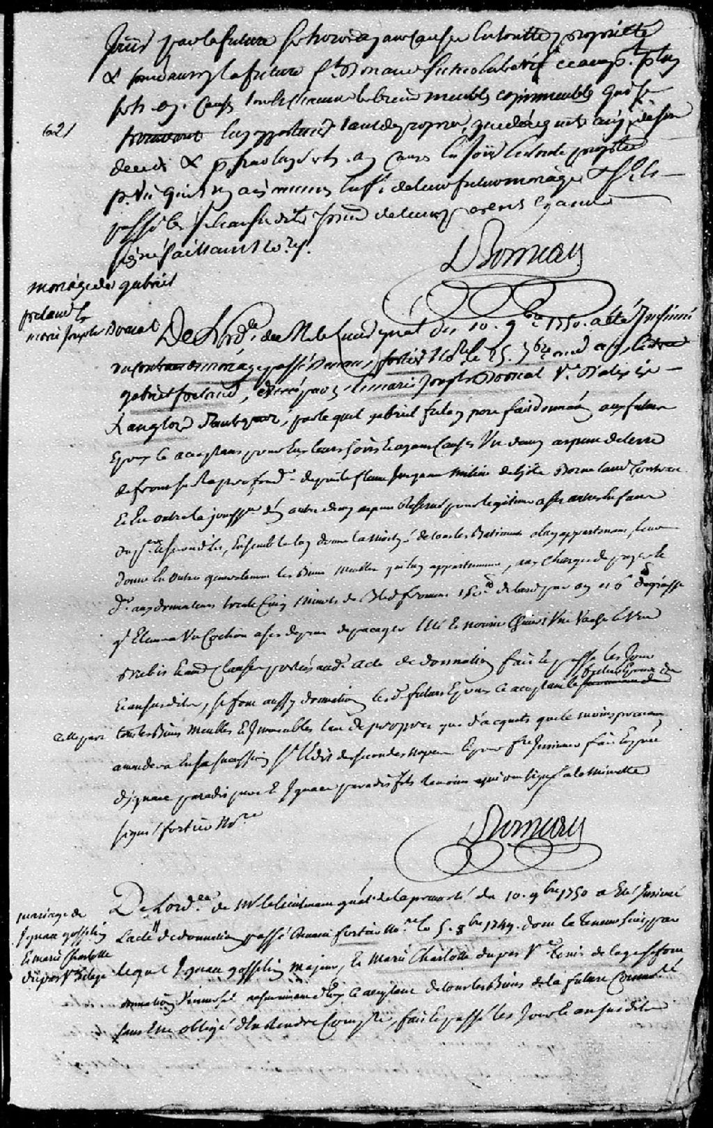 Extrait du contrat de mariage passé pardevant maître Fortier, notaire, entre Gabriel Freland (Ferland), fils de Gabriel Freland (Ferland) père; et Marie-Josèphe Dorval (Bouchard dite Dorval), veuve de défunt Alexis Langlois
