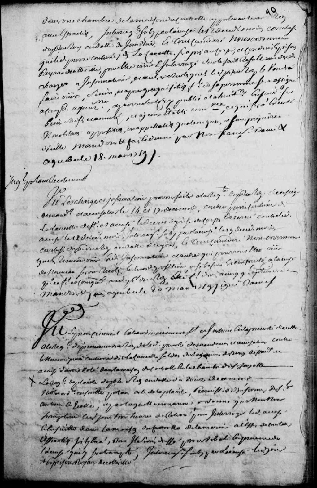 Procès de Pierre Couturier dit Lalancette, défendeur, accusé d'avoir volé avec effraction des effets dans une chambre de la maison de contrôle appartenant au Roi et d'avoir recelé lesdits effets ; interrogatoire, procès-verbal fait sur les lieux de l'effraction, arrestation, dépositions de 17 témoins, récolements et confrontations, et interrogatoire sur la sellette ; une sentence est prononcée et ledit accusé est trouvé coupable de vol et de recel, il est condamné à être battu nu et fustigé de verge, il sera marqué au fer chaud de la fleur de lys à l'épaule droite, il sera ensuite mené aux galères pour y servir comme forçat pour trois ans, 29 mars 1759, Archives nationales à Québec, Fonds Prévôté de Québec, (03Q,TL1,S11,SS1,D105A,P56).