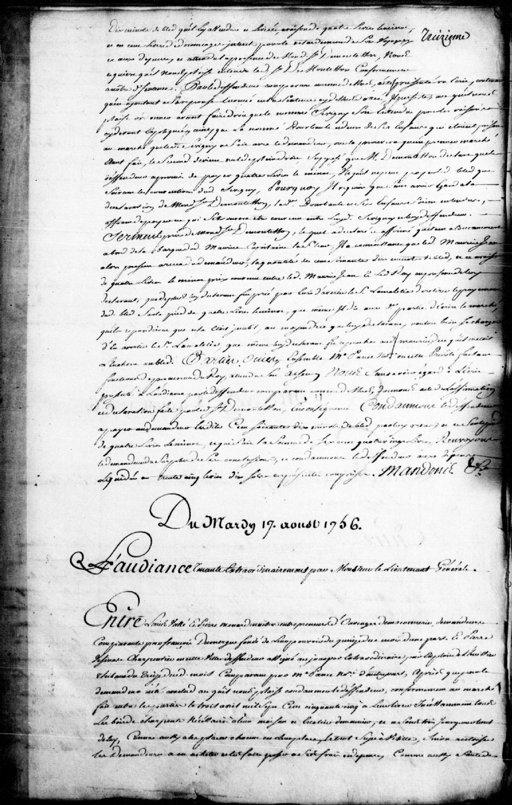 Cause entre Louis Vallé (Vallée) et Pierre Ménard, maîtres entrepreneurs d'ouvrages de maçonnerie, demandeurs, comparant par François Dumergue, fondé de leur pouvoir, et Pierre Vézinat (Vézina), charpentier de Québec, défendeur, comparant par maître Panet, notaire, à propos d'un marché fait entre les parties en date du 3 avril 1755 ; le défendeur est condamné à exécuter le marché dont il est question et à payer les dépens liquidés à 16 livres et 10 sols