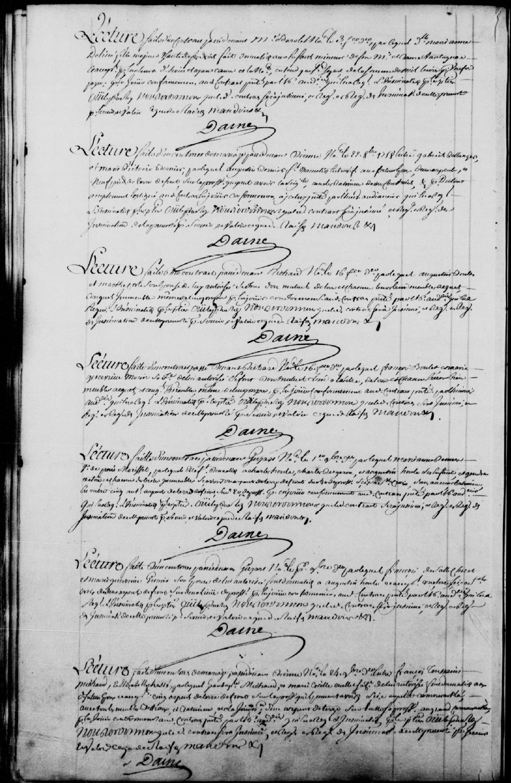 Lecture d'un contrat de mariage passé devant maître Dionne, notaire, le 22 octobre 1758, entre Gabriel Bellanger (Bélanger) et Marie-Victoire Bernier, par lequel Augustin Bernier fait donation aux futurs époux d'une part de terre et des bâtiments dessus construits ; suit l'ordre d'enregistrer ledit contrat au registre des insinuations